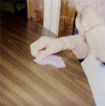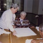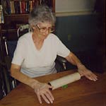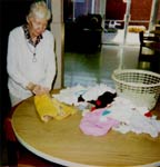 resident's pasttime- she enjoys folding baby clothes- "Sucess Therapy". The has