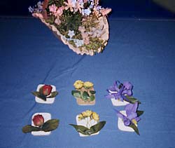 of flowers, animals, baby dolls with clothes or blankets, stuffed animals, etc.